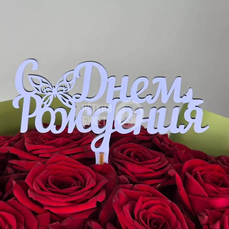 Эта яркая и стильная вставка-топпер с надписью «С Днем Рождения» отлично дополнит любой букет.