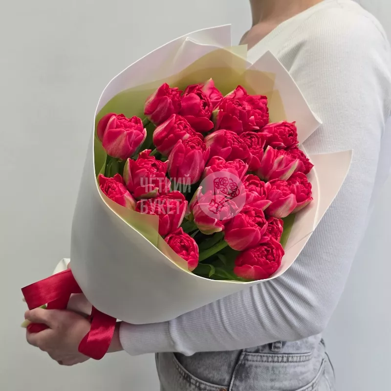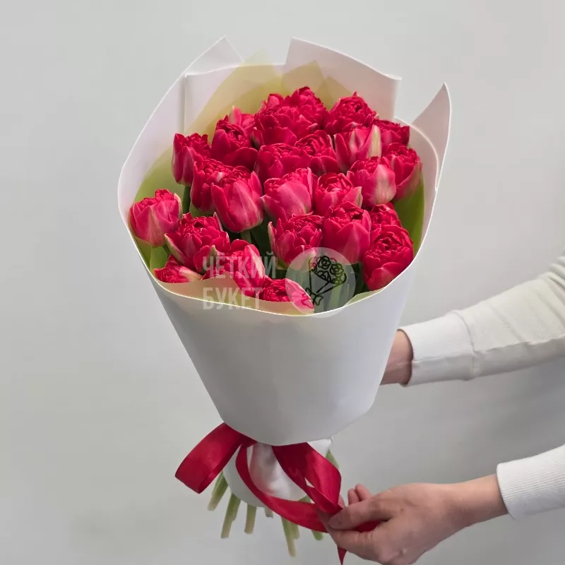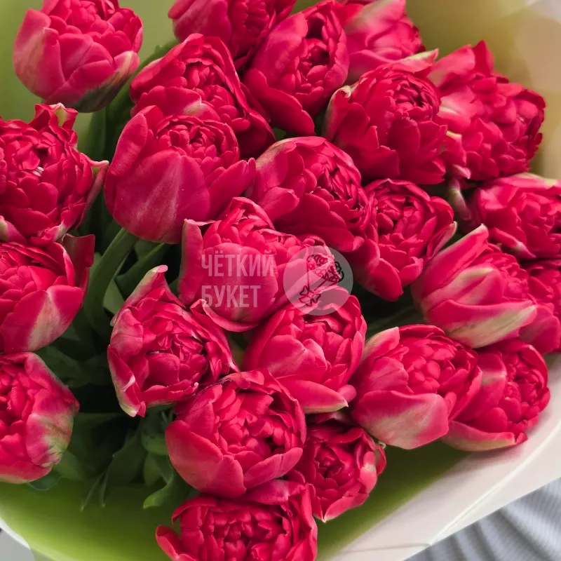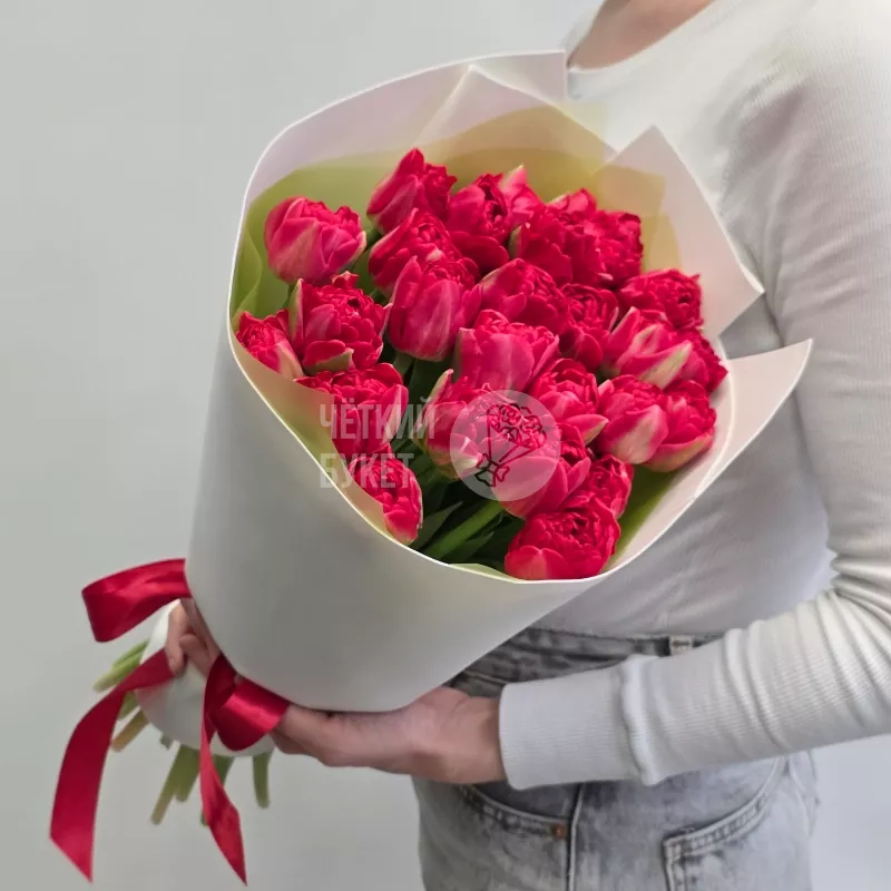 Этот изящный букет из 25 красных пионовидных тюльпанов станет прекрасным подарком и дополнением любого интерьера. Яркое сочетание насыщенного красного цвета и белых оттенков создает яркое и элегантное настроение. Тюльпаны — символ любви и красоты, они подчеркнут особенность любого праздника или события. Благодаря свежести и качеству цветов, букет долго сохраняет свою привлекательность. Он отлично подойдет как для романтического сюрприза, так и для украшения домашнего уюта. Подарите яркое настроение и эмоции с нашим букетом из пионовидных тюльпанов.