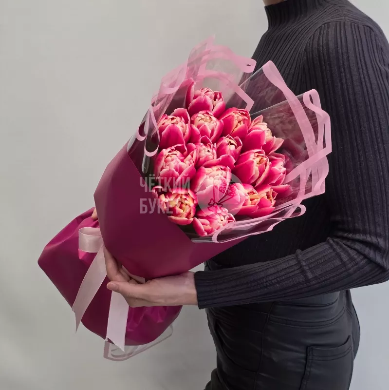Этот букет из 15 пионовидных тюльпанов создан для тех, кто ценит элегантность и изящность. Стильное оформление подчеркивает природную красоту каждого цветка и делает композицию особенно привлекательной. Яркие тюльпаны добавят яркости и свежести любому интерьеру или событию. Нежные оттенки и аккуратная сборка создают ощущение гармонии и уюта. Этот букет станет отличным подарком для тех, кто любит цветы и ценит оригинальный дизайн.