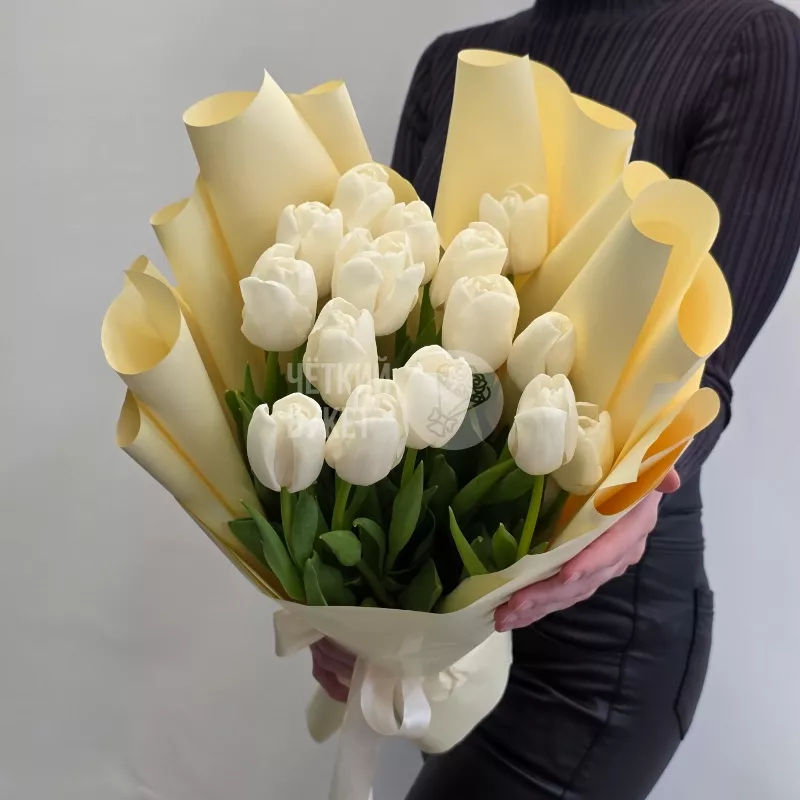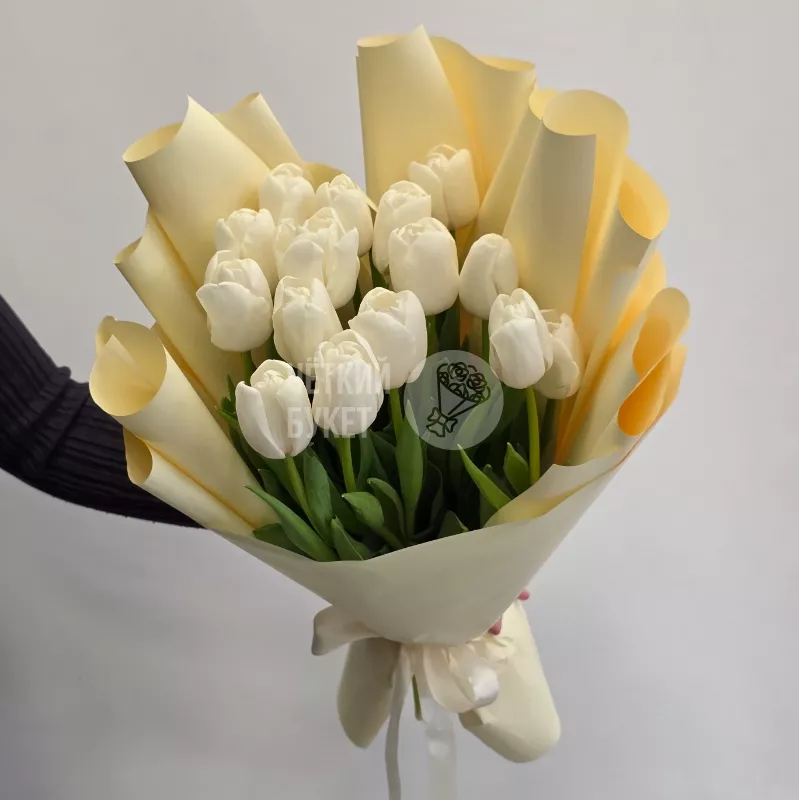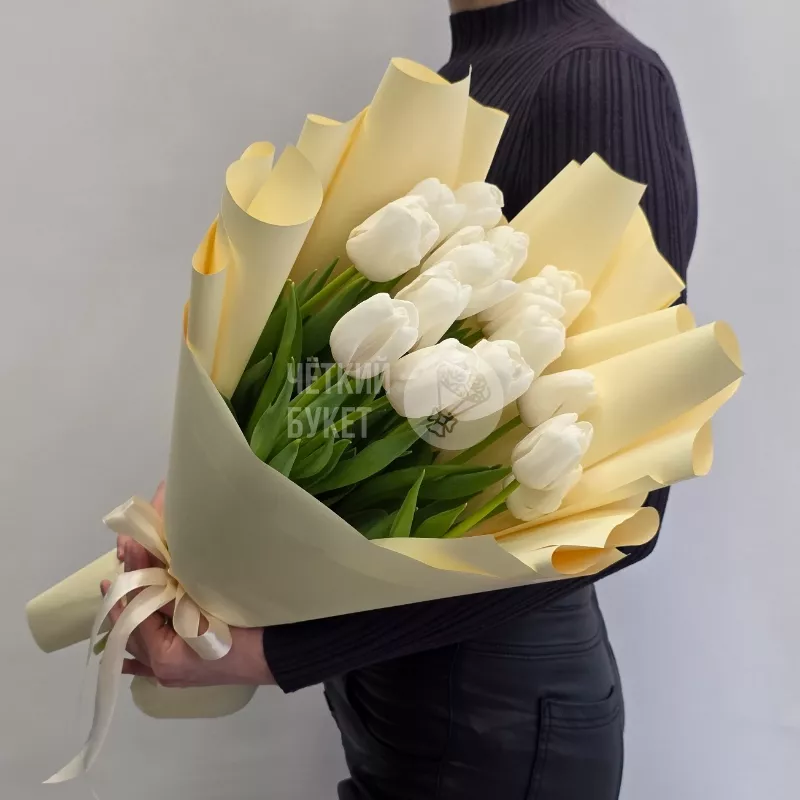 Букет из 15 белых тюльпанов в стильном оформлении