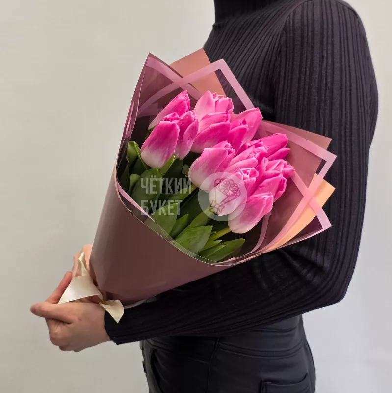 Букет из 15 розовых тюльпанов