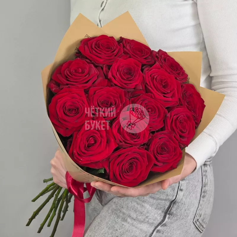 Букет из 15 красных роз Ред Наоми в кремовом