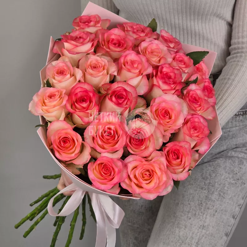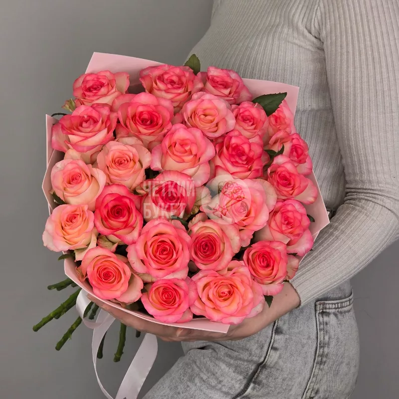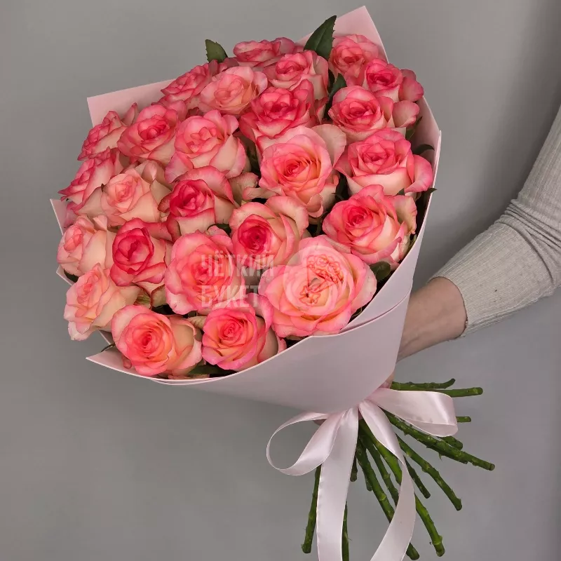 Букет из 25 бело-розовых роз Джумилия