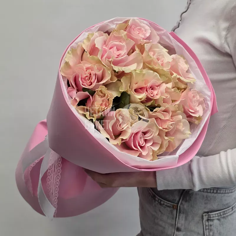 Этот букет состоит из 11 великолепных французских роз, которые придают ему изысканный и элегантный вид. Цветы насыщенного розового цвета создают ощущение романтики и нежности. Каждая роза тщательно подобрана и аккуратно собрана в гармоничную композицию. Букет идеально подойдет для выражения любви и благодарности. Легкий аромат роз добавляет особое очарование и уют. Он станет отличным подарком на особый случай или для украшения интерьера. . Этот букет подчеркнет важность и нежность ваших чувств.